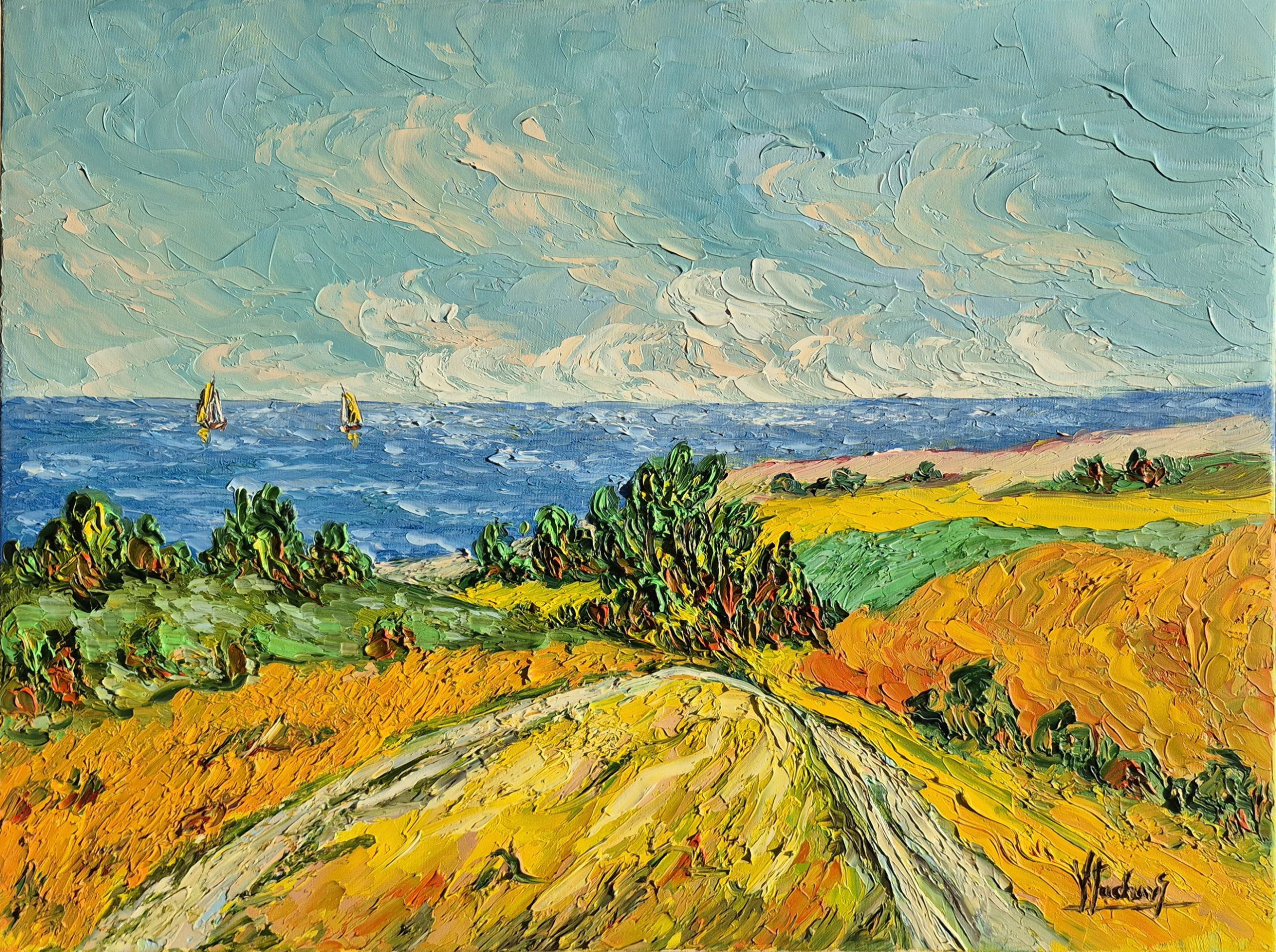 Od ponad dwudziestu lat równolegle rozwija twórczość malarską. Czuje się przede wszystkim marynistą – morze jest jego największą pasją i głównym źródłem inspiracji, choć w jego dorobku obecne są również pejzaże. W pracowni maluje farbami olejnymi, w plenerze sięga po akryl. Charakterystyczna dla jego malarstwa jest technika impastu, często wykonywana szpachlą, nadająca obrazom ekspresję, fakturę i silny ładunek emocjonalny.