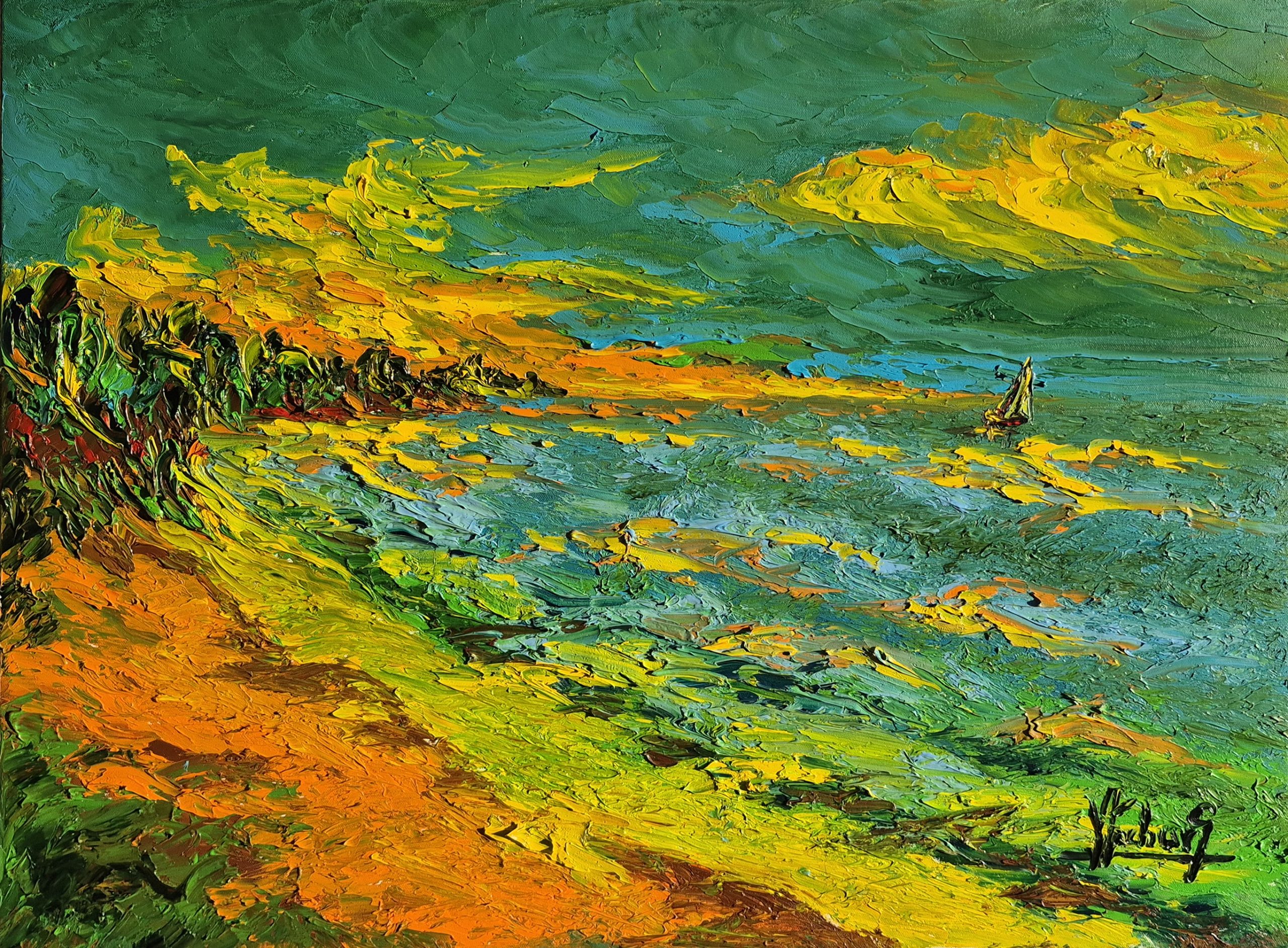 Jerzy Stachura – Sztormowy brzeg, olej na płótnie 60×80